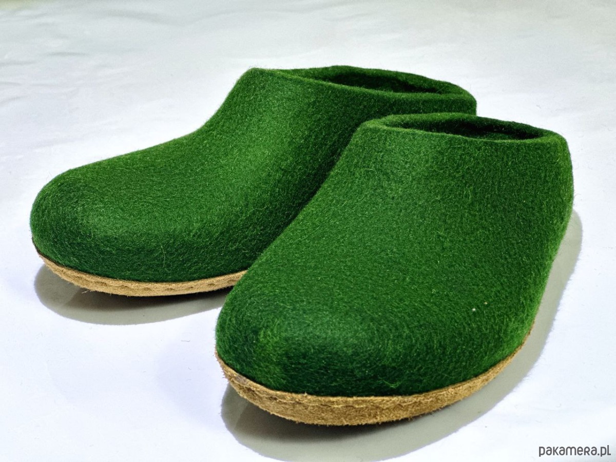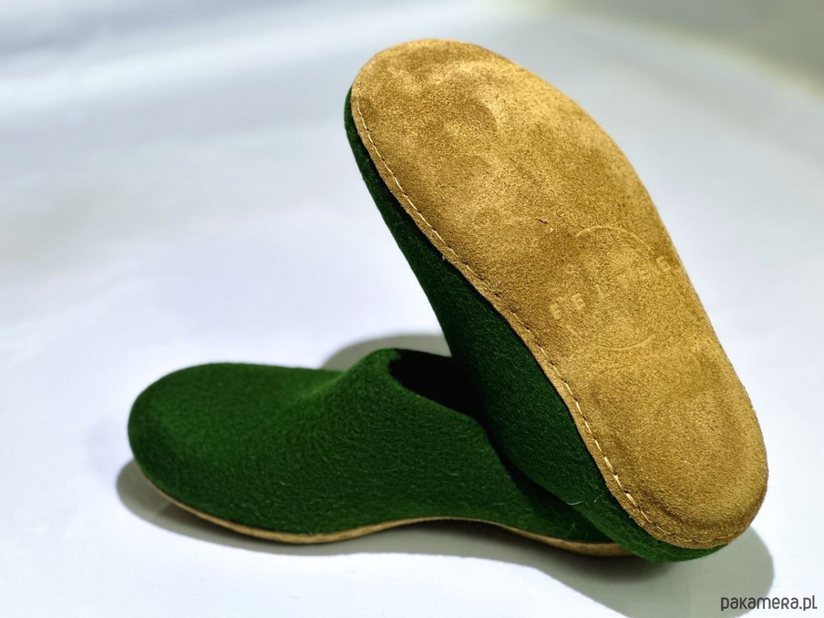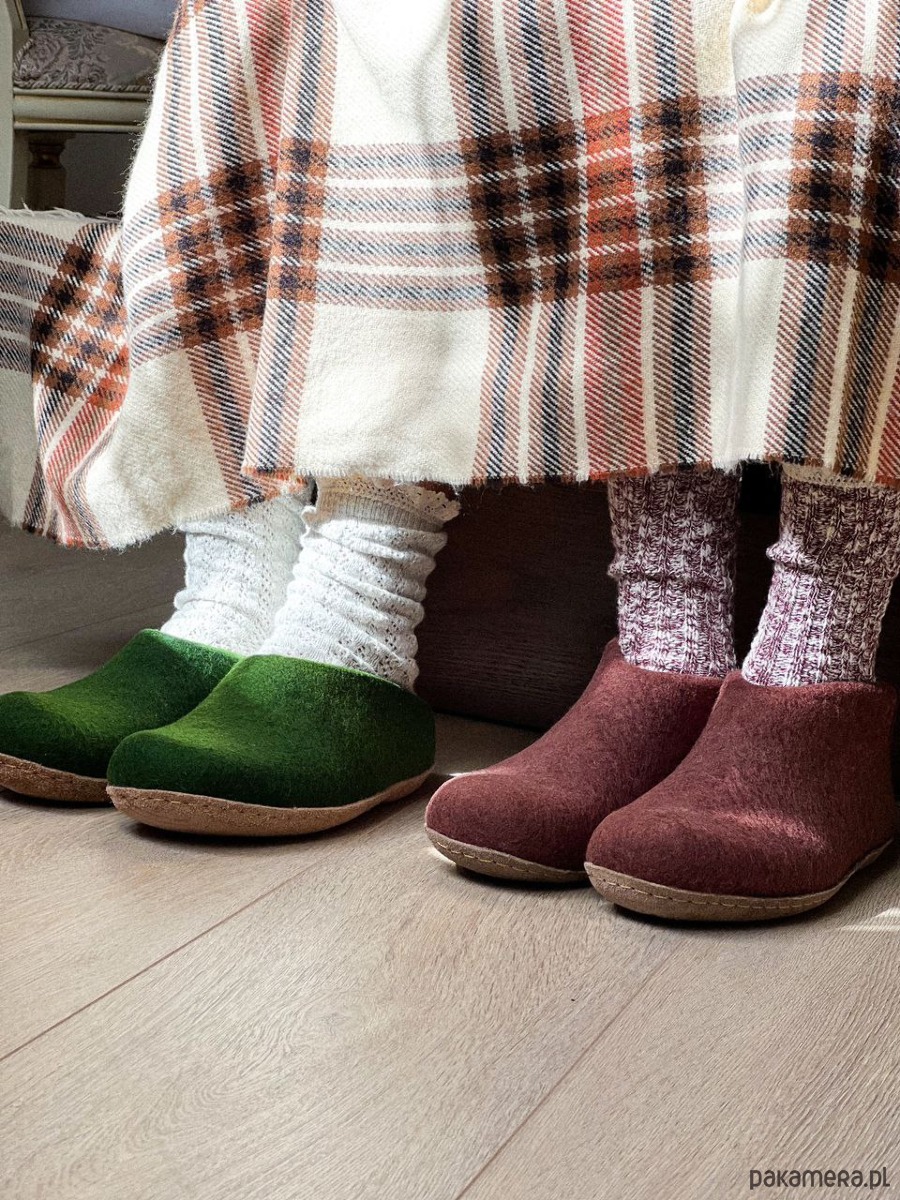 Kapcie filcowe w kolorze beżowym z naturalnej owczej wełny. Podeszwa z naturalnej skóry. Bezszwowa konstrukcja, termoregulacja, oddychalność. Ręczne wykonanie gwarantuje najwyższą jakość.